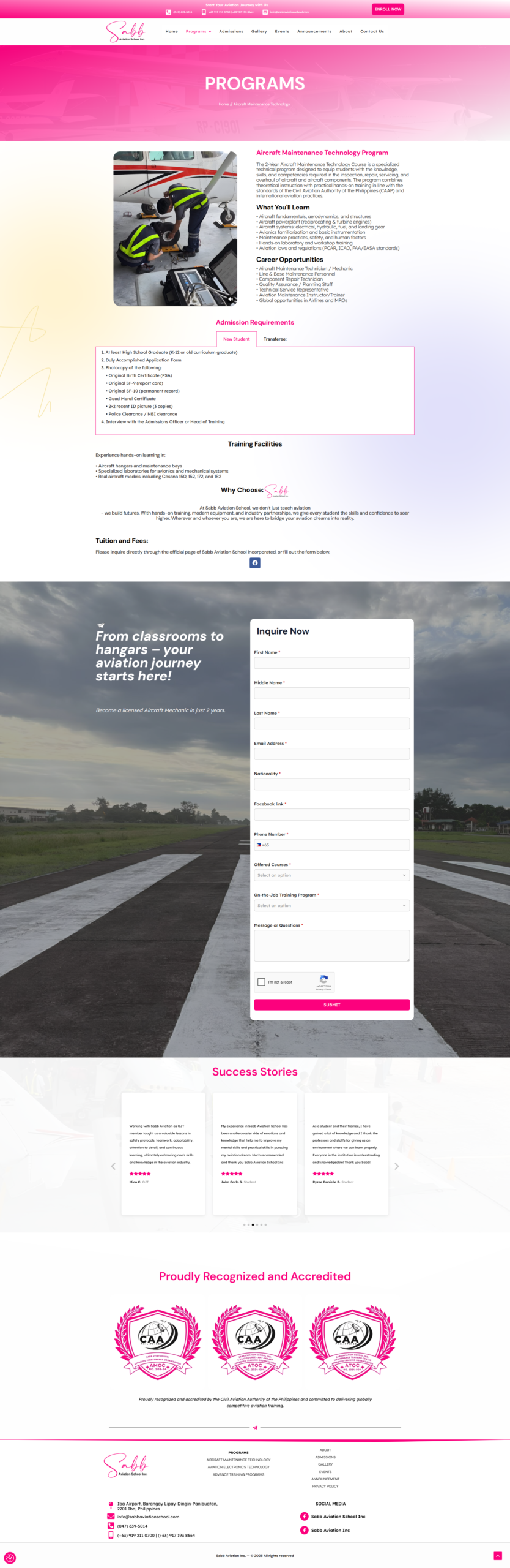 I worked as a freelance web developer for Sabb Aviation School, helping them build their online presence from scratch. They needed a professional, responsive, and SEO-friendly website to attract new students and provide essential information online. I handled everything from UI layout, responsive design, to SEO-ready structure, ensuring the site was fast, easy to navigate, and visually appealing.